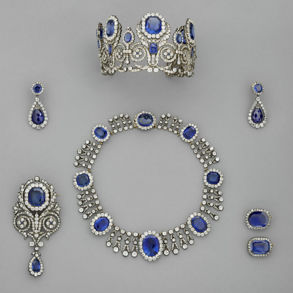 • Egy nyaklánc Marie-Amélie és Hortense királynők zafír készletéből