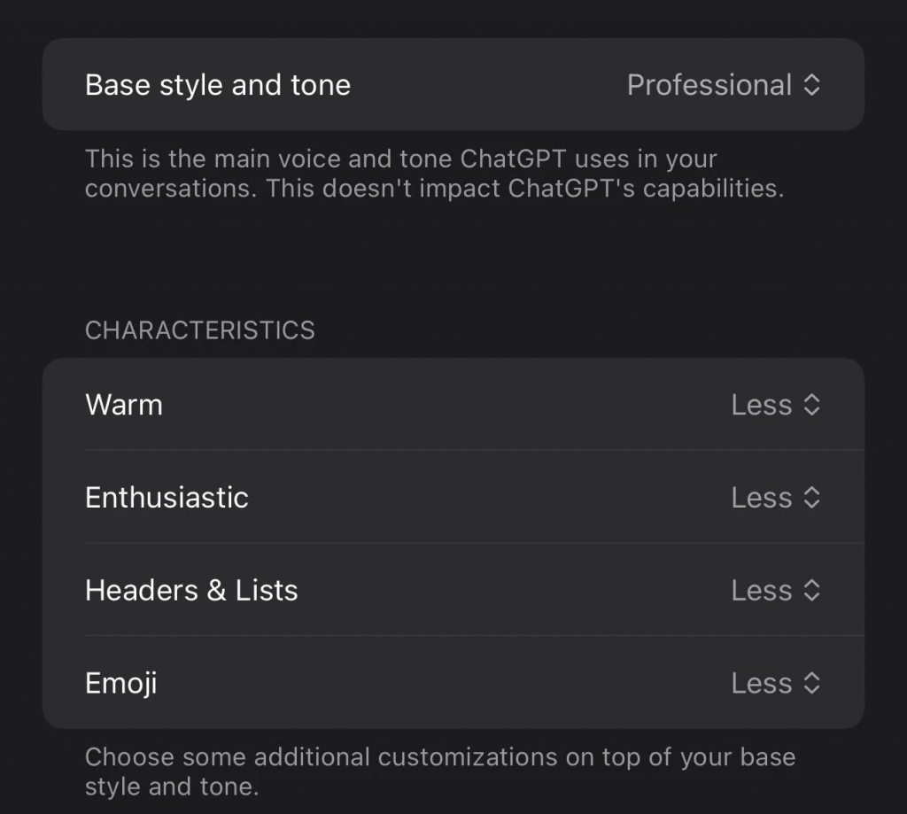 Kifinomultabb stílusválaszték: Az új beállítások kiegészítik a korábban bevezetett „Szakmai”, „Őszinte” és „Különc” tónusokat, segítve az OpenAI-t abban a törekvésében, hogy a ChatGPT hangvétele ne legyen se túl hűvös, se túl hízelgő.